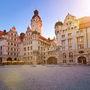 Burgplatz Leipzig und Blick auf das Neue Rathaus.